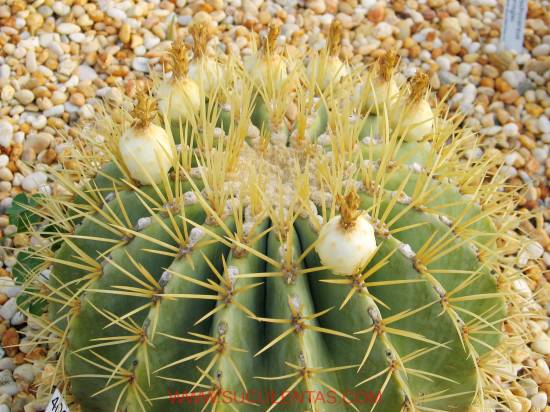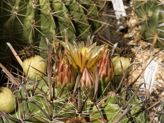 Ferocactus wislizeni ((Engelmann) Britton & Rose 1922) <-- GB - Masinfo --> <-- GB - Etimologia -->: Dedicada al Dr. Wislizenus, primer recolector de esta especie, que envió las muestras recogidas al Dr. Engelmann.
